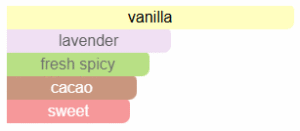 Овој уникатен гурмански мирис е направен со веганска формула предводена од моќно трио ванили. Одозгора, инфузија од ванила со дрвени тоналитети, во срцето ванила кавијар со богата сладост, а во основата апсолут од ванила збогатен со сјајна  лаванда. Горни ноти – ванила,лаванда,какао,ѓумбир Средни ноти – ванила кавијар Основни ноти – ванила абсолут