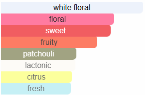 Оваа слатка напивка на радост е претставена од весели и разиграни ноти на цвет од круша, додека нотите на кафеав шеќер додаваат деликатна сладост на нејзината мирисна трага.
