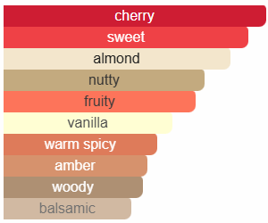 На своето прво отворање, Lost Cherry освојува со неверојатно совршенство на егзотично овошје од црна цреша кое со своето сочно зрело месо, капе во ликер од вишни со доза горчлив бадем. Како што се развива мирисот избиваат дихотомните акорди – слатки, светли и темни. Сирупот Griotte предизвикува мацерација на слатки плодови од цреша, додека турската роза и Самбак јасмин даваат земјена длабочина.